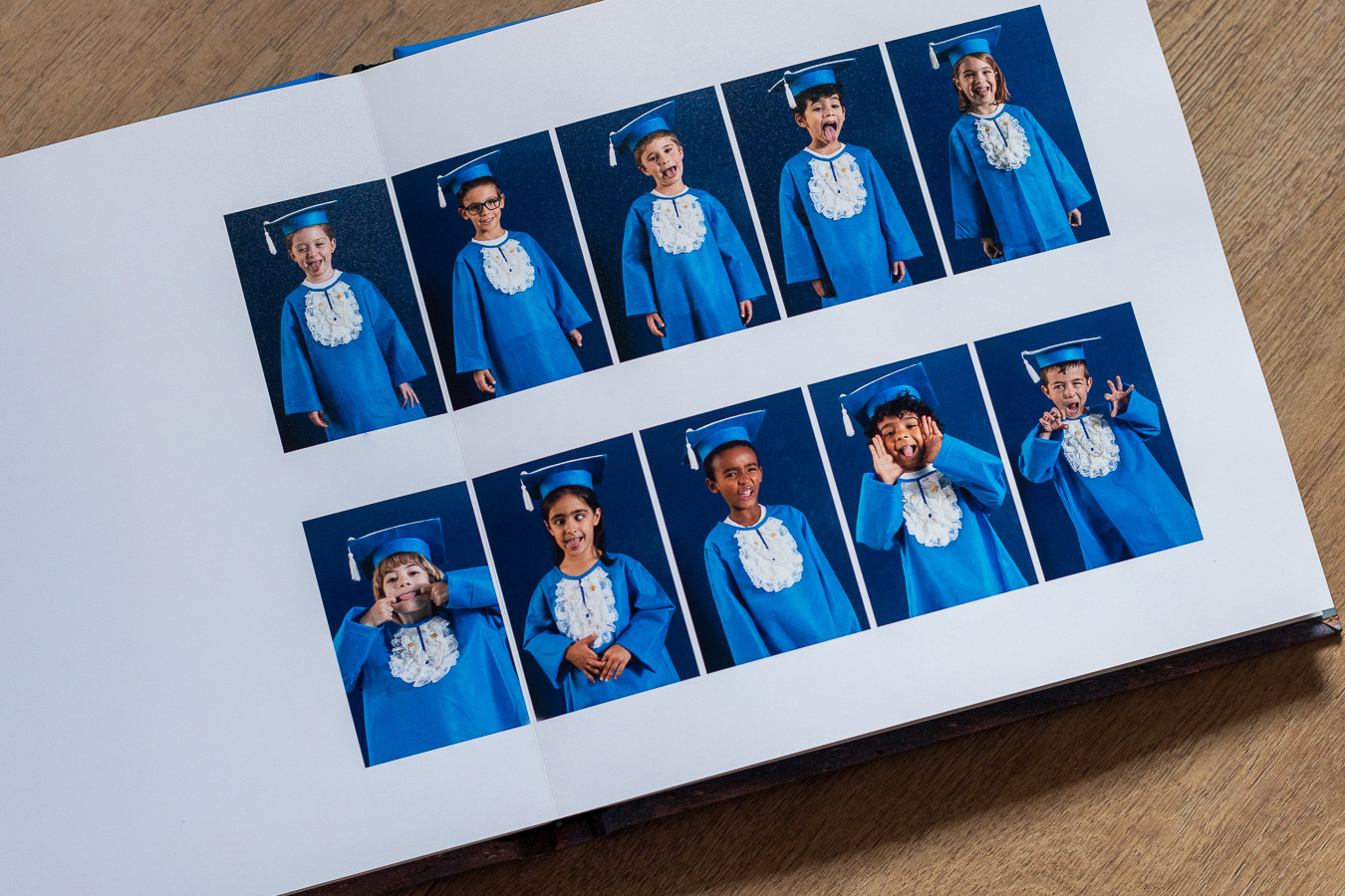 O álbum contém algumas páginas que serão comuns em todos os álbuns, como a foto da classe e as fotos de cada formando da classe na tradicional foto com a beca.